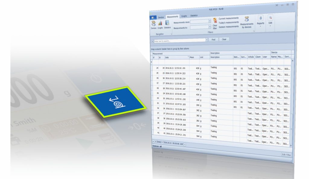 R-Lab records measurement data transmitted from balances both manually and automatically.
